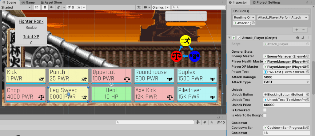 Click Fighter is probably the first time I’ve revisited a genre so far. Usually, I find myself following an interesting idea that takes me out of my comfort zone rather than sticking to one genre that I like. However, when deciding on a project that would allow me to learn about designing and balancing progression within a three-month period, it made sense to choose an idle clicker.