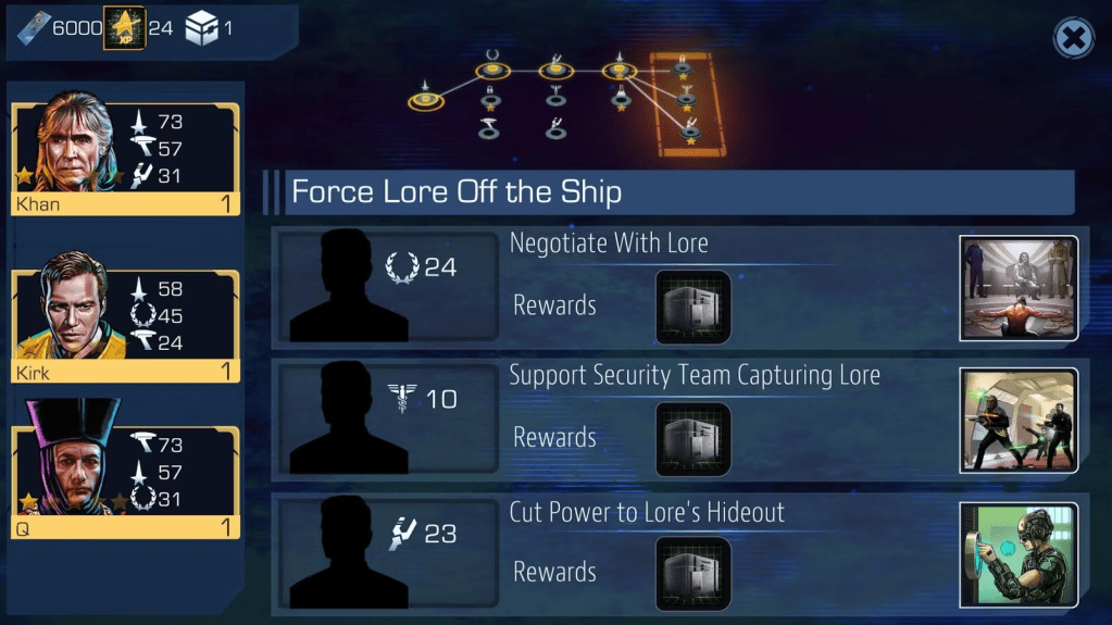 Star Trek: Timelines is a long-running CCRPG where players collect characters and ships, each with their own stats and traits. The main draw is the narrative chapters, which offer players a chance to make choices in conflicts and escapades featuring classic characters from every series. Players bring their best crew through different paths on Away Missions, as well as fight giant enemy ships in Ship Battles. Crew can be upgraded by crafting equipment for them, allowing them to take on harder missions.